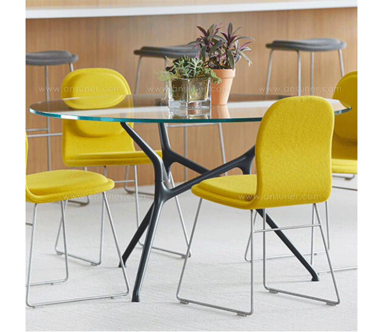 榉木和桦木胶合板座椅,乳垫内部填充高密度的聚氨酯泡沫,不锈钢底座,聚丙烯脚.