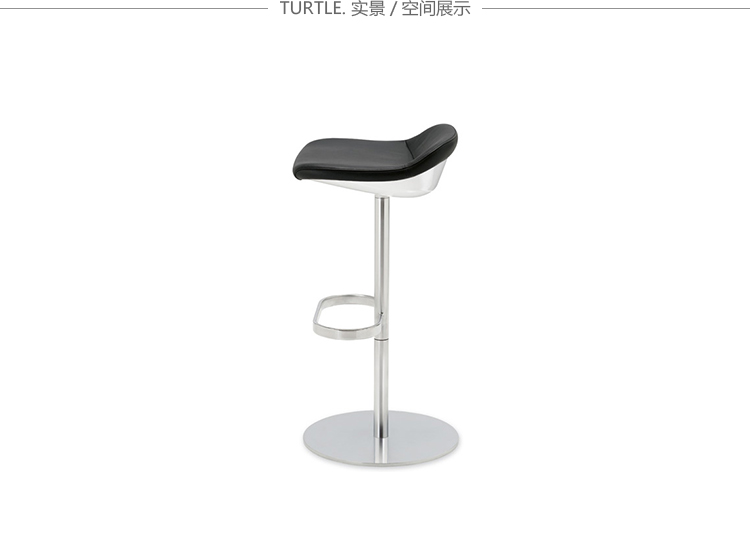 Turtle系列的吧椅特征集中在它小巧的身体上。内部支持的桶可以提供安全的支撑同时脚踏板是最完美的延伸线。旋转底座是一个扁平的底座。外壳可以用白色或黑色塑料,也可以用织物或皮革覆盖。