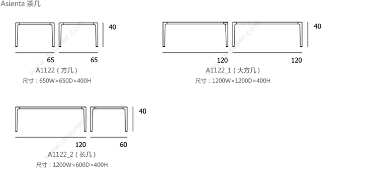 Asienta 茶几 系列尺寸/示意图