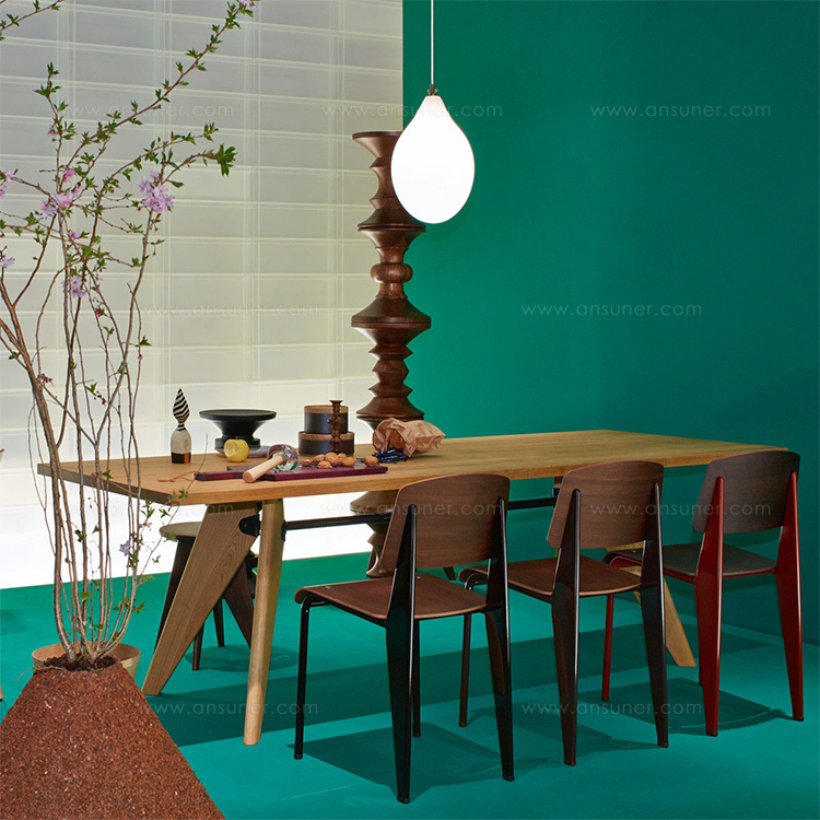 JeanProuve在第二次世界大战期间开发了Table Solvay,由于当时金属稀缺,他设计了优雅的木腿腿。 天然橡木,深色烟熏橡木或美国胡桃木的实木组件为桌子带来轻松和精致的感觉。