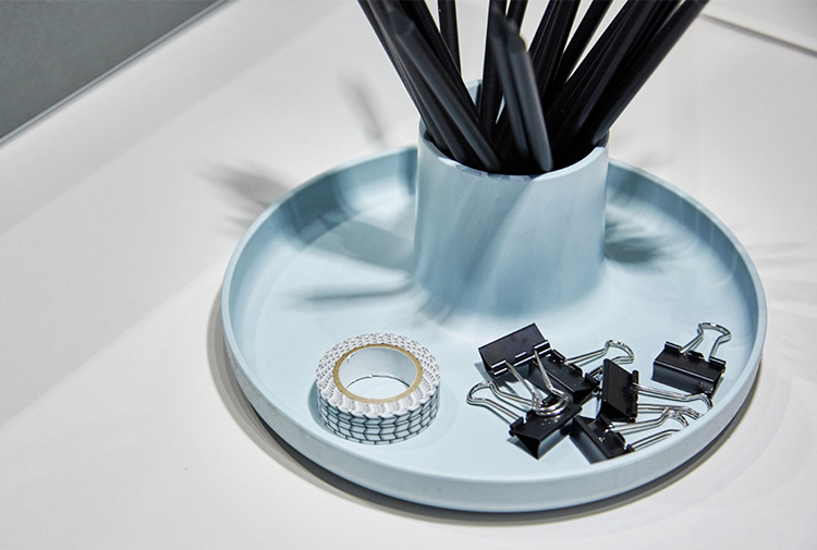 O-Tidy是一种实用的多功能存储容器。 该设计不仅提供托盘和杯子功能,而且还将其简单的形状组合成一个新的,完美比例的物体。