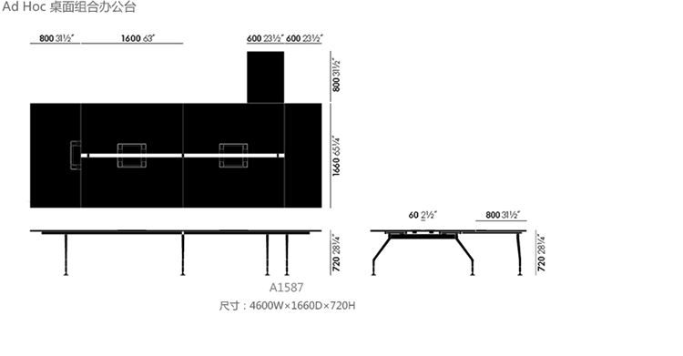 Ad Hoc 桌面组合办公台 系列尺寸/示意图