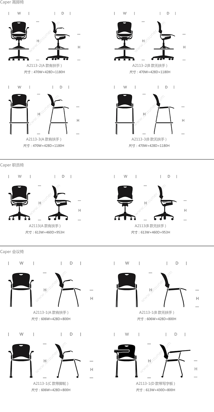 Caper 高脚椅 系列尺寸/示意图