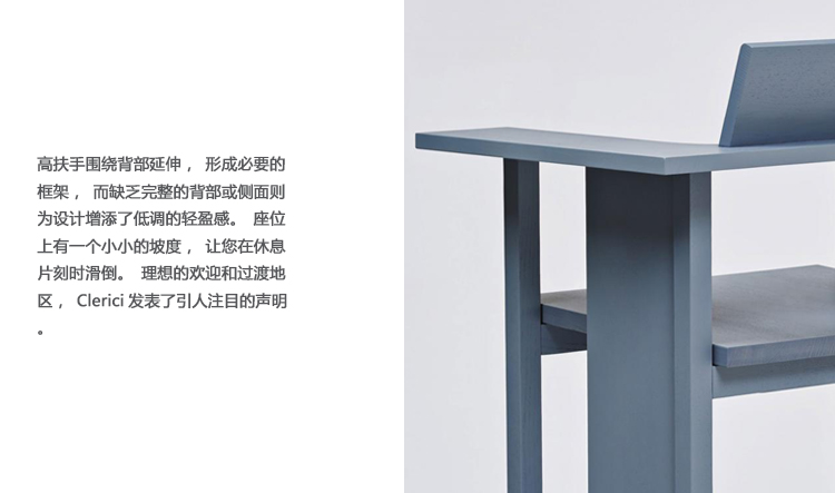 Clerici将慕尼黑设计师Konstantin Grcic的清洁工业美学与Mattiazzi在木材中的最精湛工艺结合起来。这个休息室提供一个扶手椅、一个两个座位和一个三个座位的长椅。细长而稀疏,Grcic解构了传统的座椅形式,木板和空隙之间有着可爱的相互作用。高扶手围绕背部延伸,形成必要的框架,而缺乏完整的背部或侧面则为设计增添了低调的轻盈感。座位上有一个小小的坡度,让您在休息片刻时滑倒。理想的欢迎和过渡地区,Clerici发表了引人注目的声明。