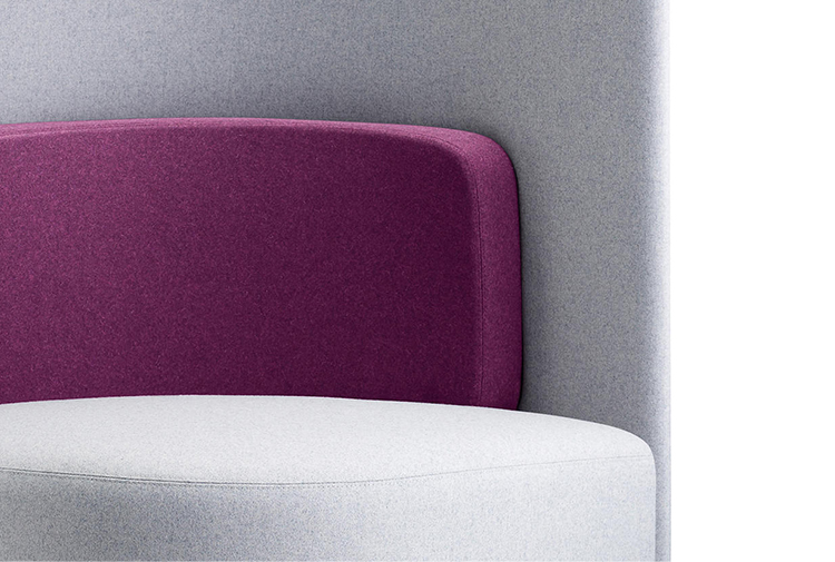 作为一种有高、低背两种款式可供选择的椅子,这种设计可以提高声学特性,并吸收周围背景噪音。
