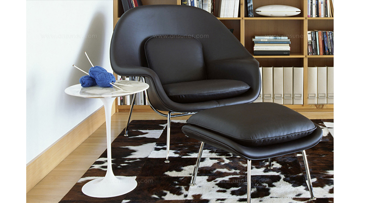 Womb Chair 的基本构造是由抛光镀铬或雾面钢管底座,以一体成型的泡棉包覆框架所组成。 Eero Saarinen 设计这张椅子挑战了一般世俗的规则,打破窠臼,树立了新的现代设计和舒适的标准,充分显示他的高超才华。