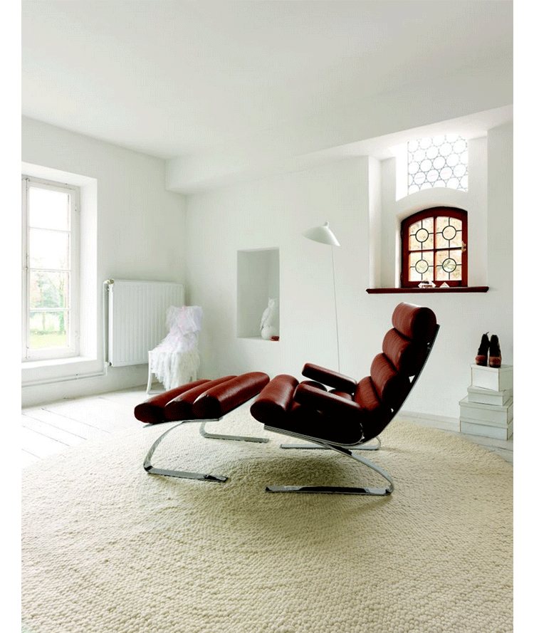 Reinhold Adolf & Hans Jurgen Schropfer为德国著名家具公司Cor设计了一款名为鼻窦系列的家具,这系列家具包括Sinus Lounge Chair(鼻窦躺椅)、Sinus Lounge Ottoman(鼻窦休闲脚踏)及其组合Sinus Lounge Chair and Ottoman(鼻窦躺椅&脚踏)。躺椅造型就像一只只圆形的鼻窦组合在一起,材质是不锈钢框架椅身、进口皮革扪面、软包内部填充进口海绵,躺着上面非常的抒情惬意。