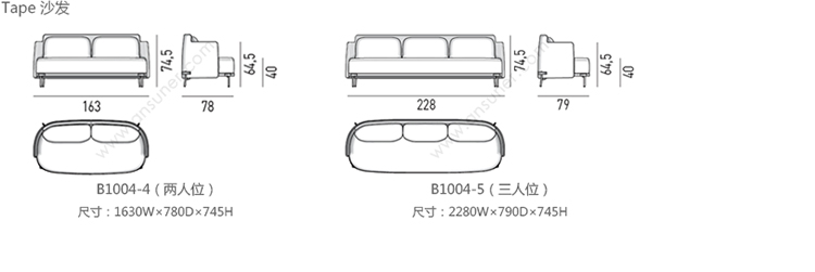 Tape 沙发 系列尺寸/示意图