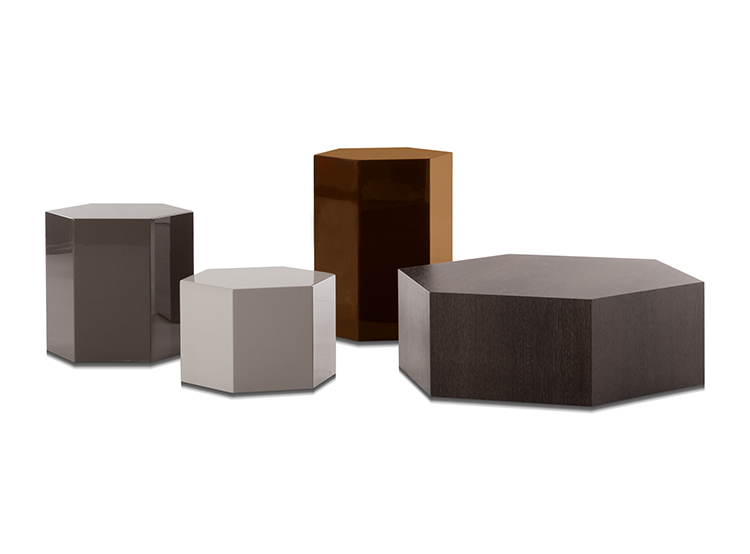 六边形棱柱的多面反光特质让人心动不已,完美呈现四款精致漆面的光泽:Corten色、青墨色、Sand色和灰褐色。在木制版本中,Aeron通过天然名贵的米灰色鲍迪豆木饰贴面来展现出其迷人的材质魅力。Aeron边几有多种尺寸可供选择,不仅造型极具创意,还可以与系列中的其他产品组合搭配出饶有趣味的效果。