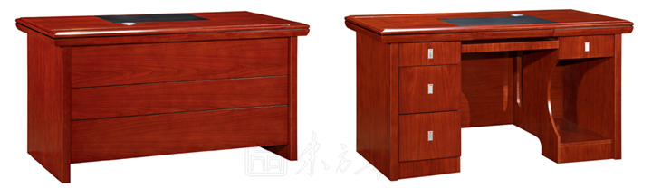 ※  上图为实木职员桌的正面和背面的配置展示图,右图为背面展示图片的,功能配置有:实木键盘架,木质三抽落地柜,开放机箱架箱。左图正面展示图有:镶嵌式皮垫,木质自然纹理,黑色漆分线条,层次感强!