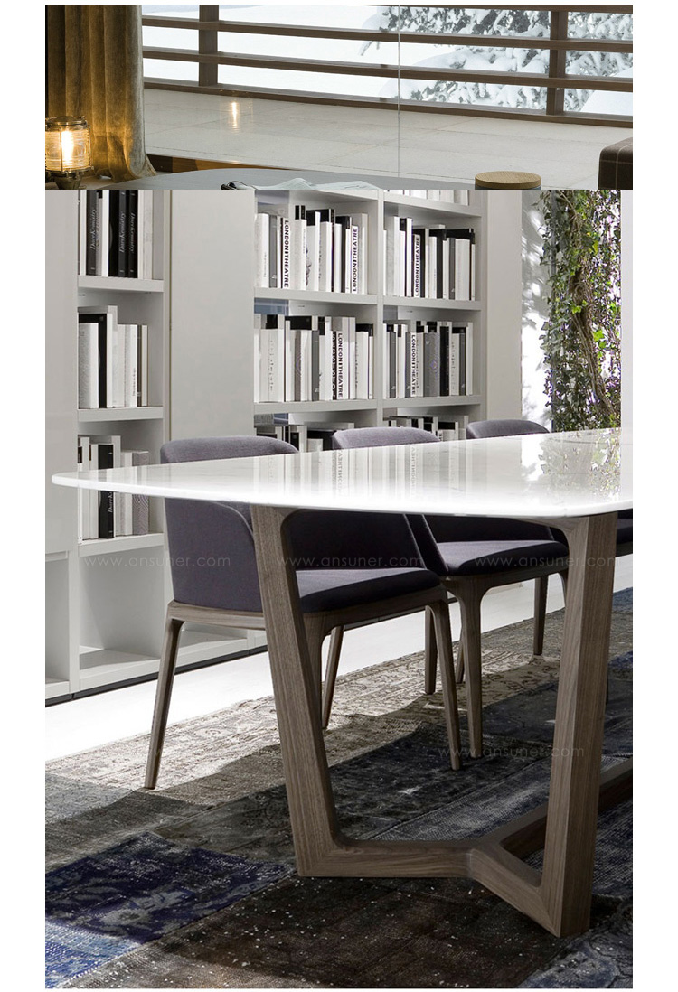 由Emmanuel Gallina设计的Concorde Table(协和式飞机桌)风格简约,通过简单的形式充分发挥了木料的自然特征。朴素优雅是Concorde长桌的独特之处,也是设计师的风格表现。长桌采用横纹核桃木和施佩萨特橡木,桌面有四种抛光和三种磨光大理石可供选择。