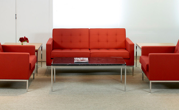 Florence Knoll Coffee and End Tables,designed to furnish the new interiors of postwar America,are scaled-down translations of the lines,gestures and materials of modern architecture.Consistent with all of her designs,the tables have a spare,geometric presence that reflects the objective perfectionism and rational design approach Florence Knoll learned from her mentor,Mies van der Rohe.