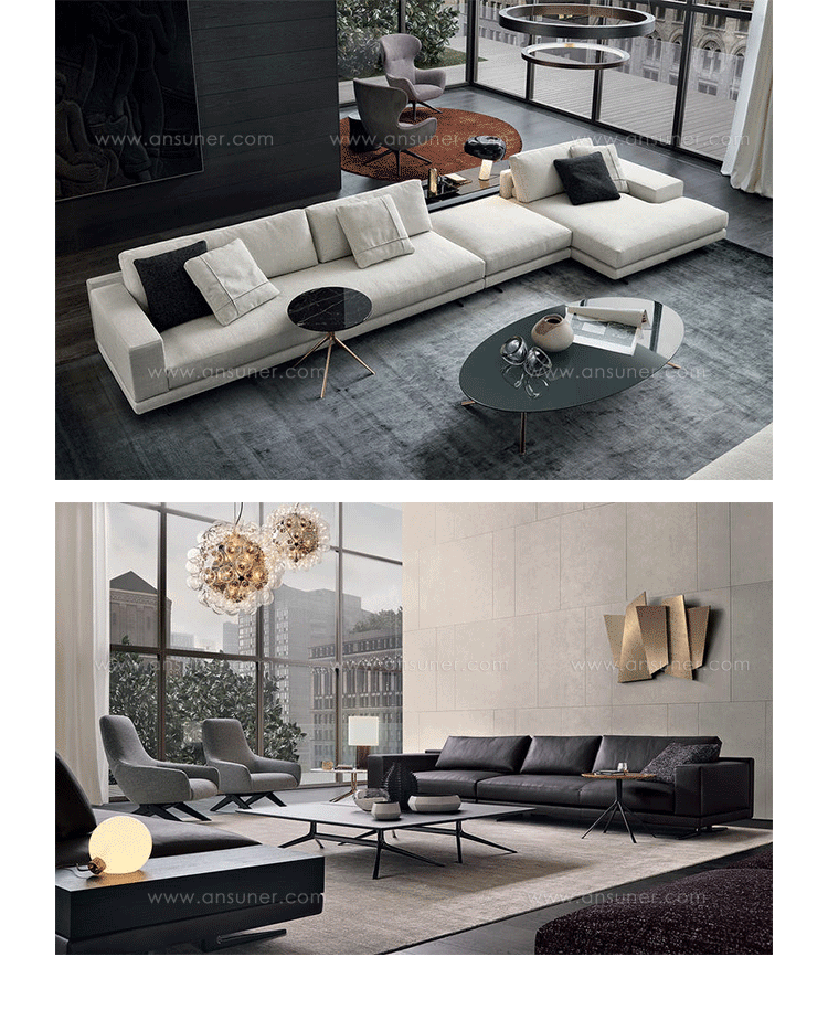 X形不锈钢脚优美稳定,超大桌面功能照样给空间通透呼吸感