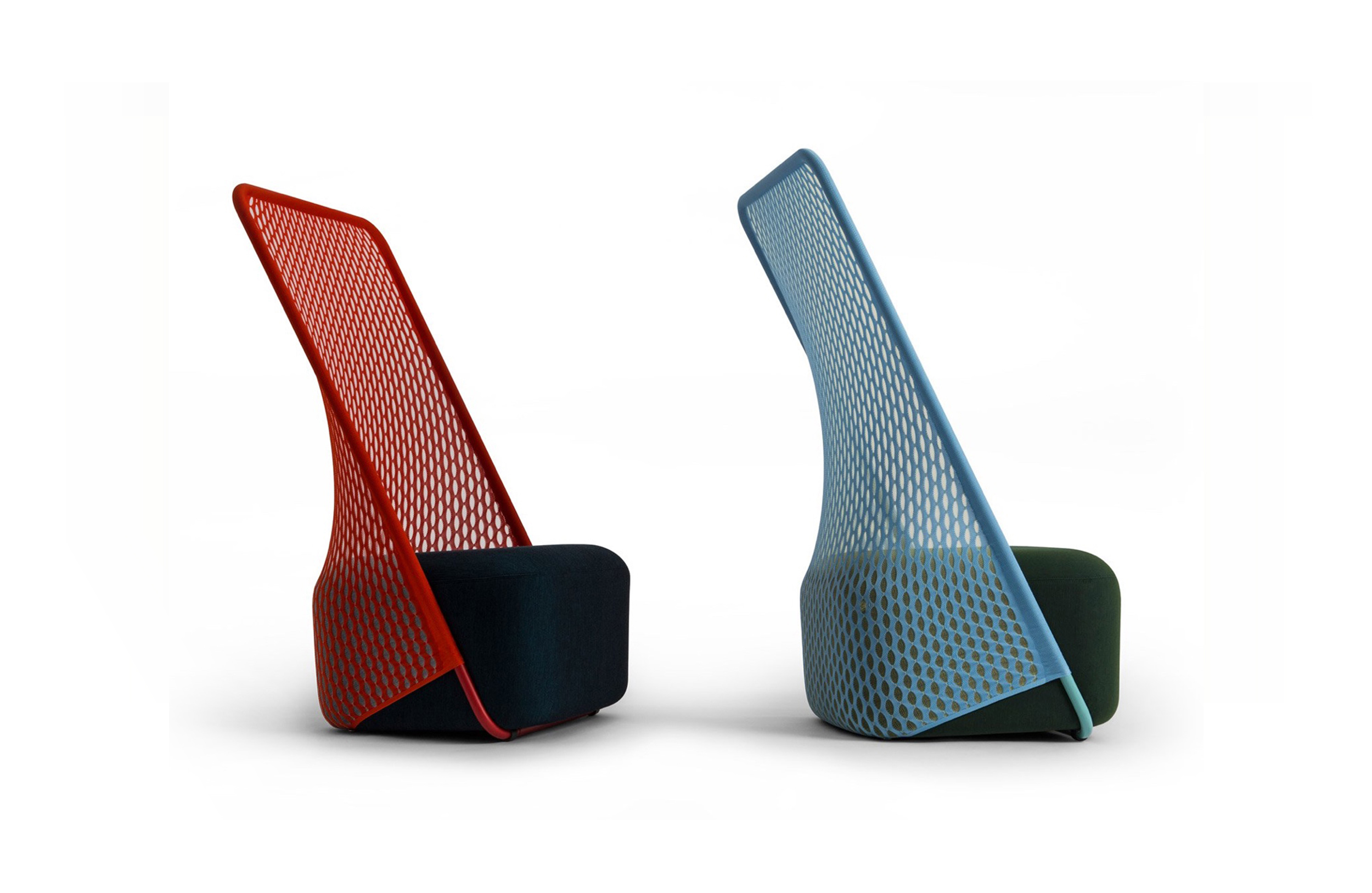 “摇篮”是两种类型座位的独特组合;一个网状结构吊床和一个传统的软垫沙发椅。扶手椅源于工作室的材料驱动、工艺主导、工业设计方法、网格材料的构建研究,以及传统座椅组件之间的关系研究。“摇床”采用了一种定制的剪裁模式,允许非弹性织物以三维的方式进行。这允许正确的张力,舒适地支持身体和视觉上和身体上减少产品的重量。