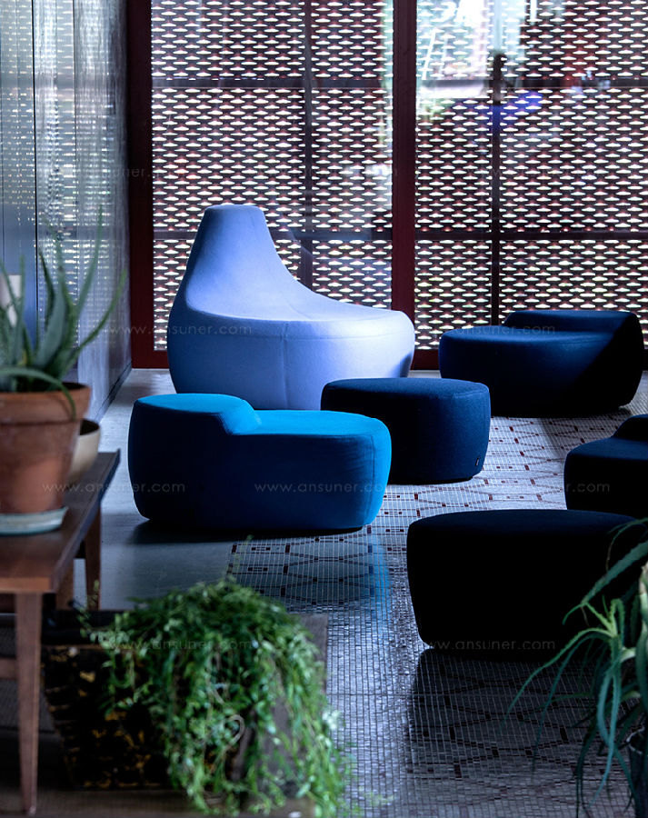 第一个Saruyama,它的地貌形态,一个非常抒情的物体,是由三个模块组成的,它们结合在一起,形成一个巨大的圆形岛屿,不同的一个从另一个中提出对座位的自由诠释。