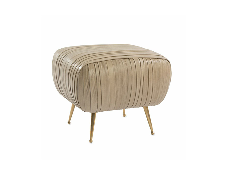 这款软垫的精致线条采用标志性褶皱皮革细节设计。 全面的蔬菜染色小羊皮手工缝制在框架上。 这款精致细腻的豪华矮凳坐落在坚固铸青铜的锥形腿上。 这是一个优雅的作品,小巧的比例,与舒芙蕾椅的完美搭配,或作为自己的声明。
