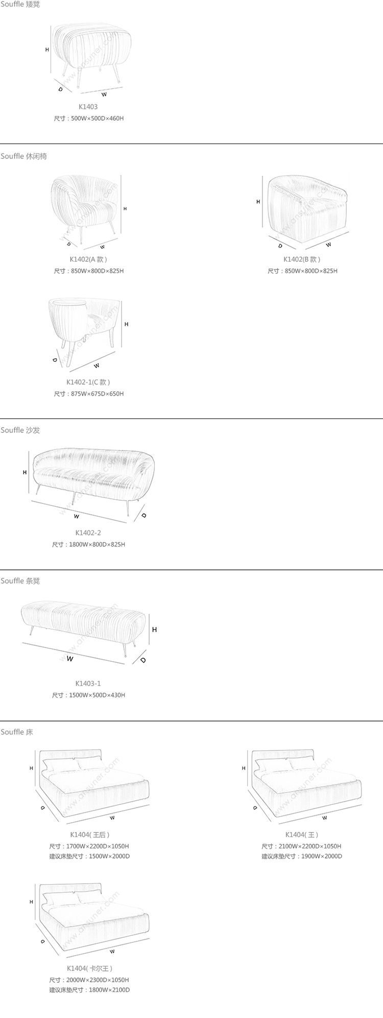 Souffle 矮凳 系列尺寸/示意图