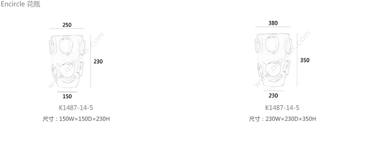 Encircle 花瓶 系列尺寸/示意图
