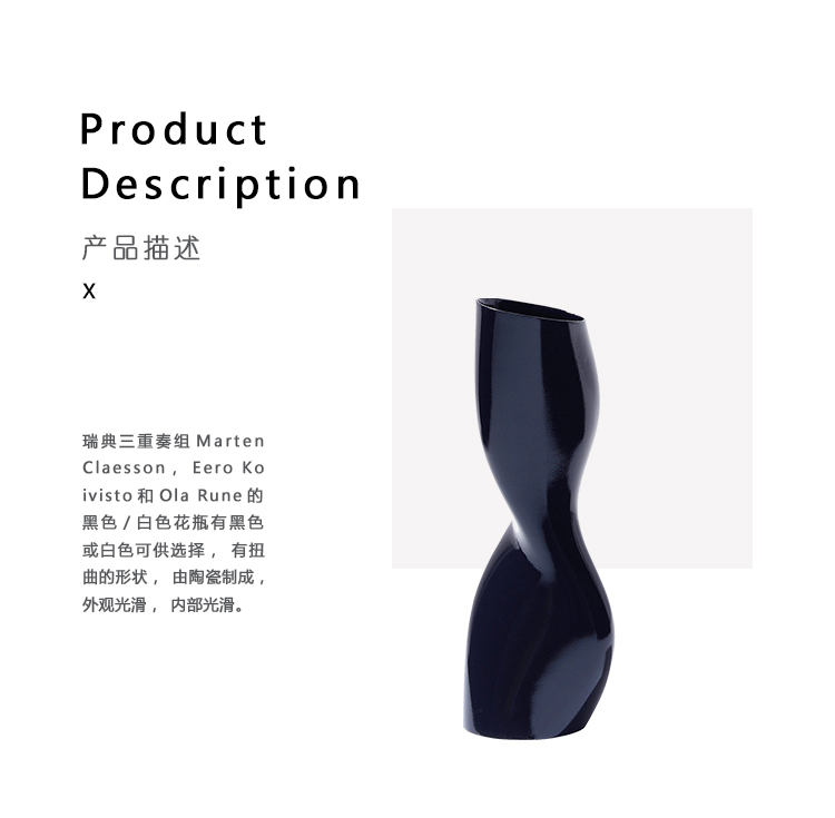 瑞典三重奏组Marten Claesson,Eero Koivisto和Ola Rune的黑色/白色花瓶有黑色或白色可供选择,有扭曲的形状,由陶瓷制成,外观光滑,内部光滑。