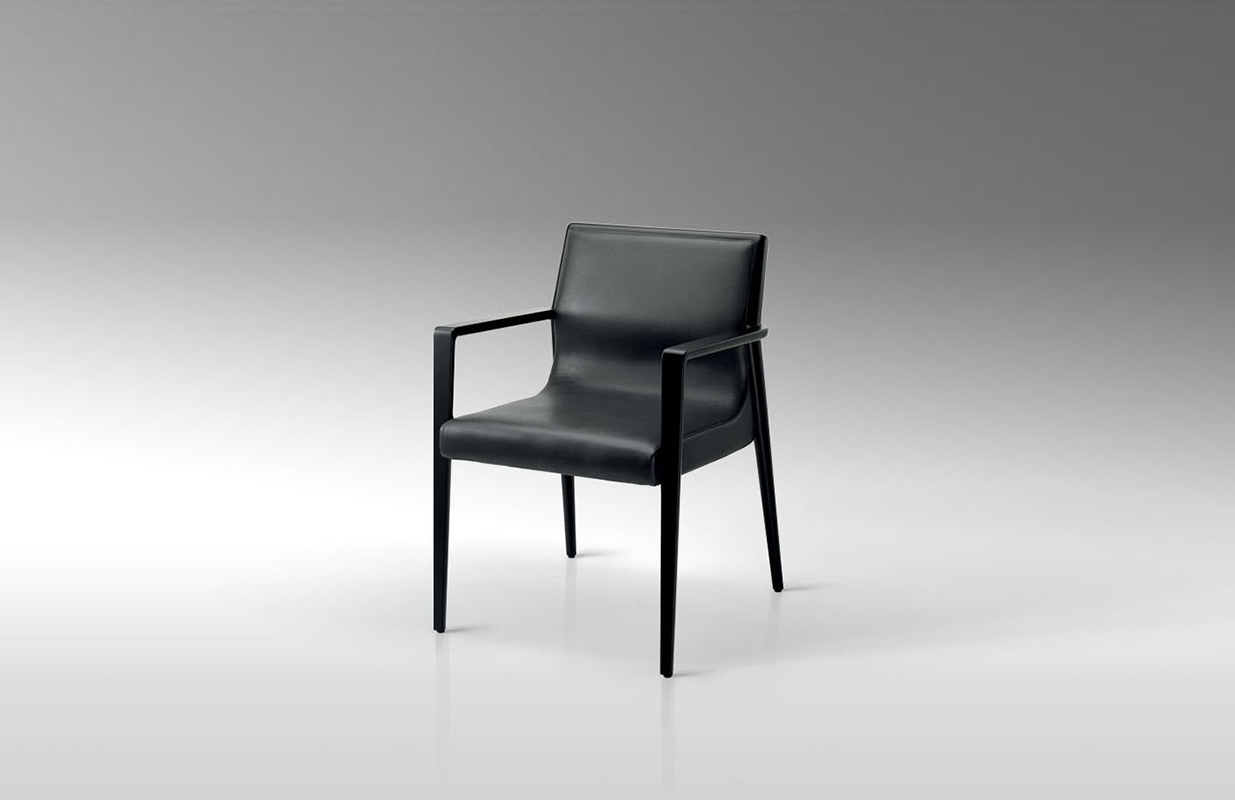 The Nairobi armchair Lounge version has a solid-wood structure stained dark brown and has been reinterpreted in traditional, harmonious and fluid cabinet-maker style without any interruptions in shape.