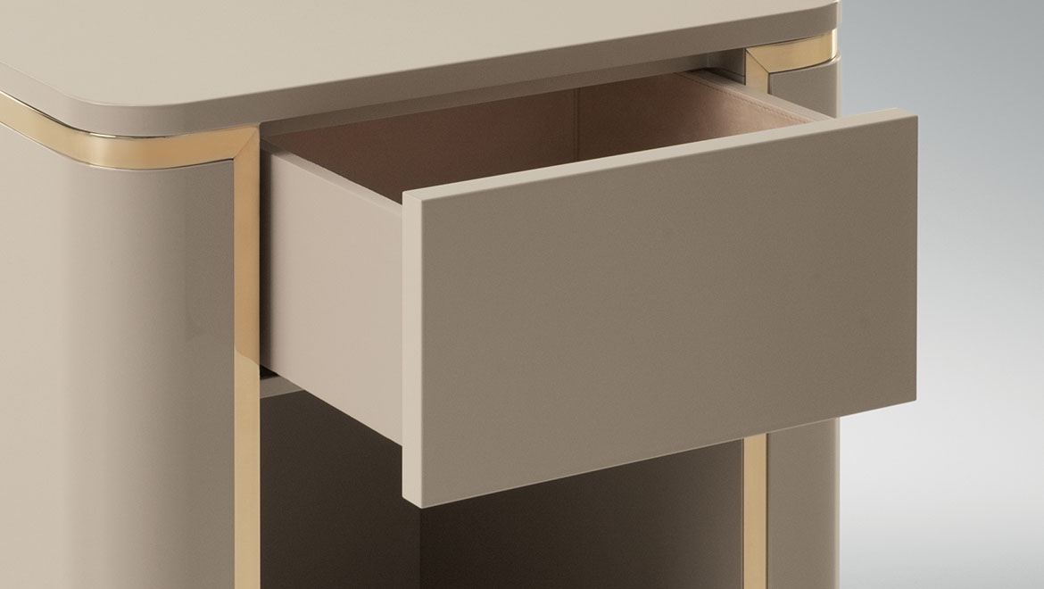Internal drawers in matt lacquered wood and with microfibre cover