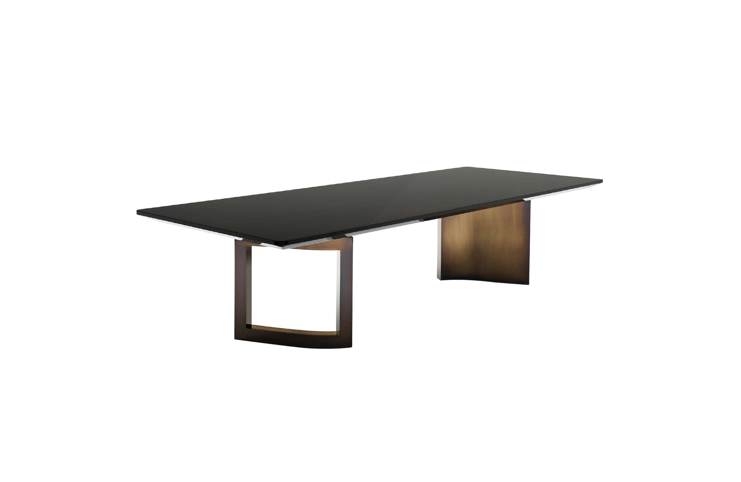 OPTIONAL Only for lacquered table: extraclear tempered grinded glass top,back varnished, coordinated with the top colour
