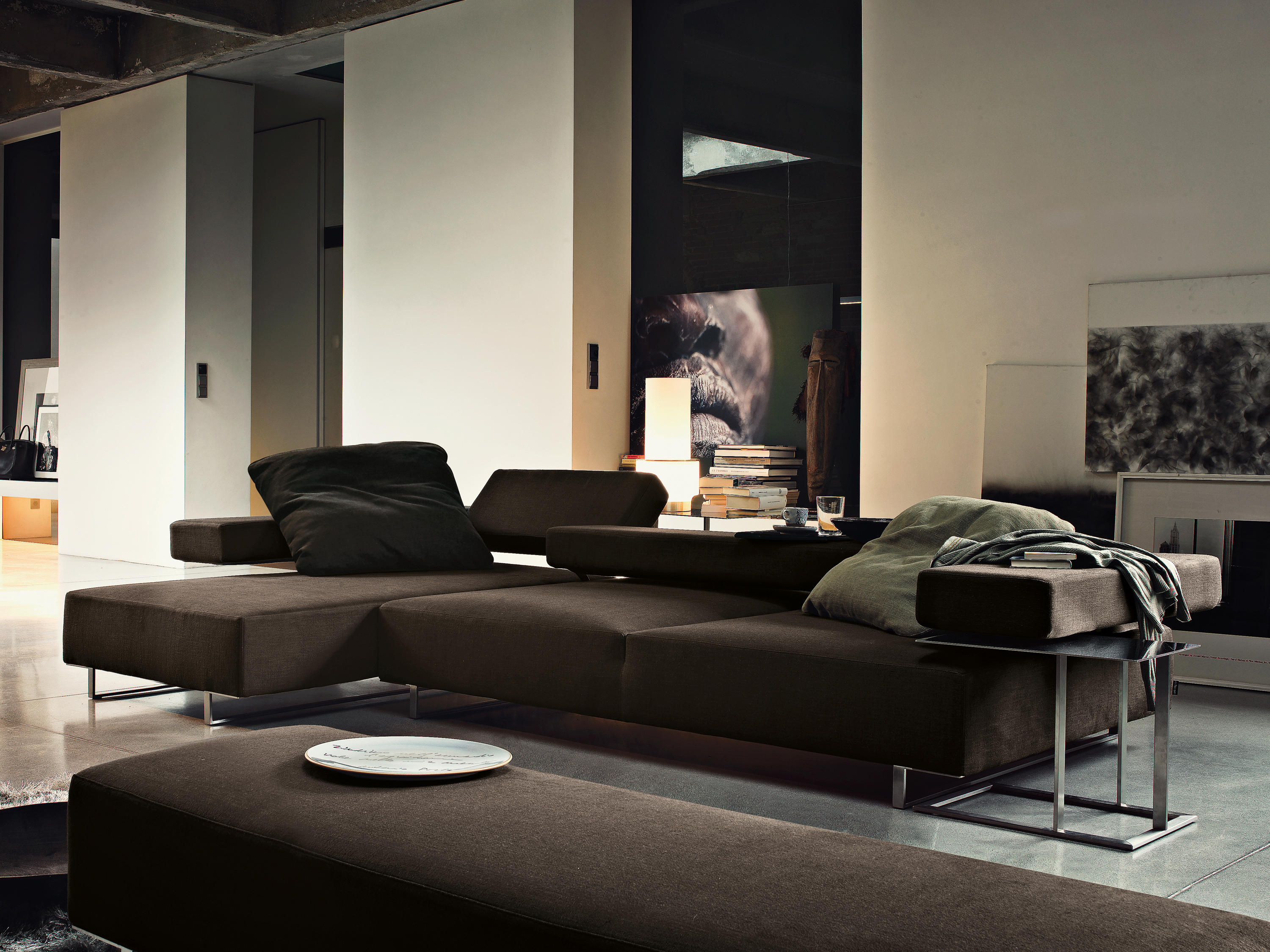矩形形状的不锈钢咖啡桌,作为阁楼沙发的补充服务元素,它们可以自由地和沙发或扶手椅进行组合。