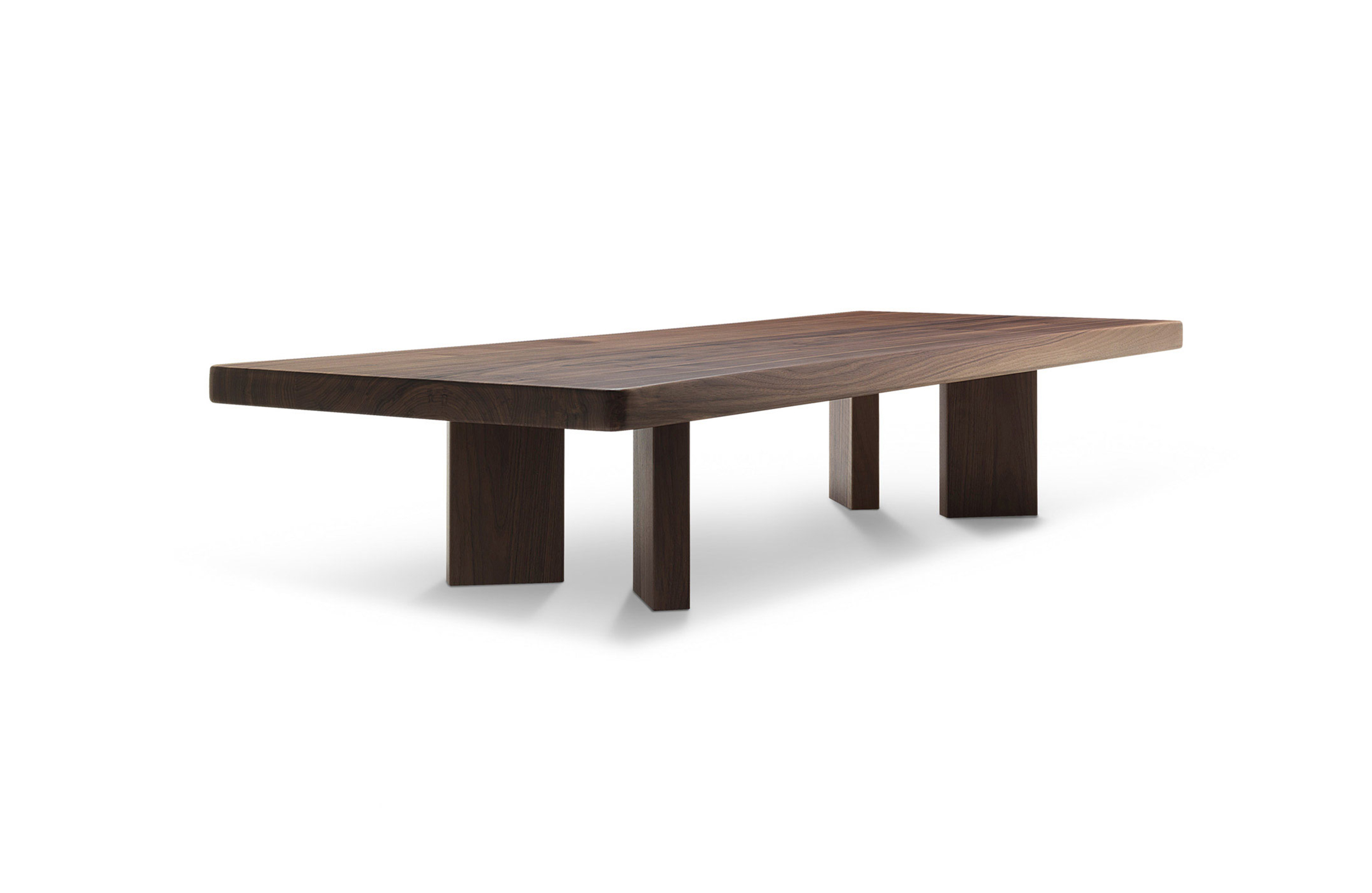 采用哑光黑色的珍贵木材或黑色实木橡木或美国黑胡桃木制造的矮桌。桌面厚度和凹面刻画了正式用语中的模型特征,并创造了令人讶异的轻盈感。该款矮桌是于1969年为日本驻巴黎大使馆设计的,这款咖啡桌是技术和中继合成的胜利。