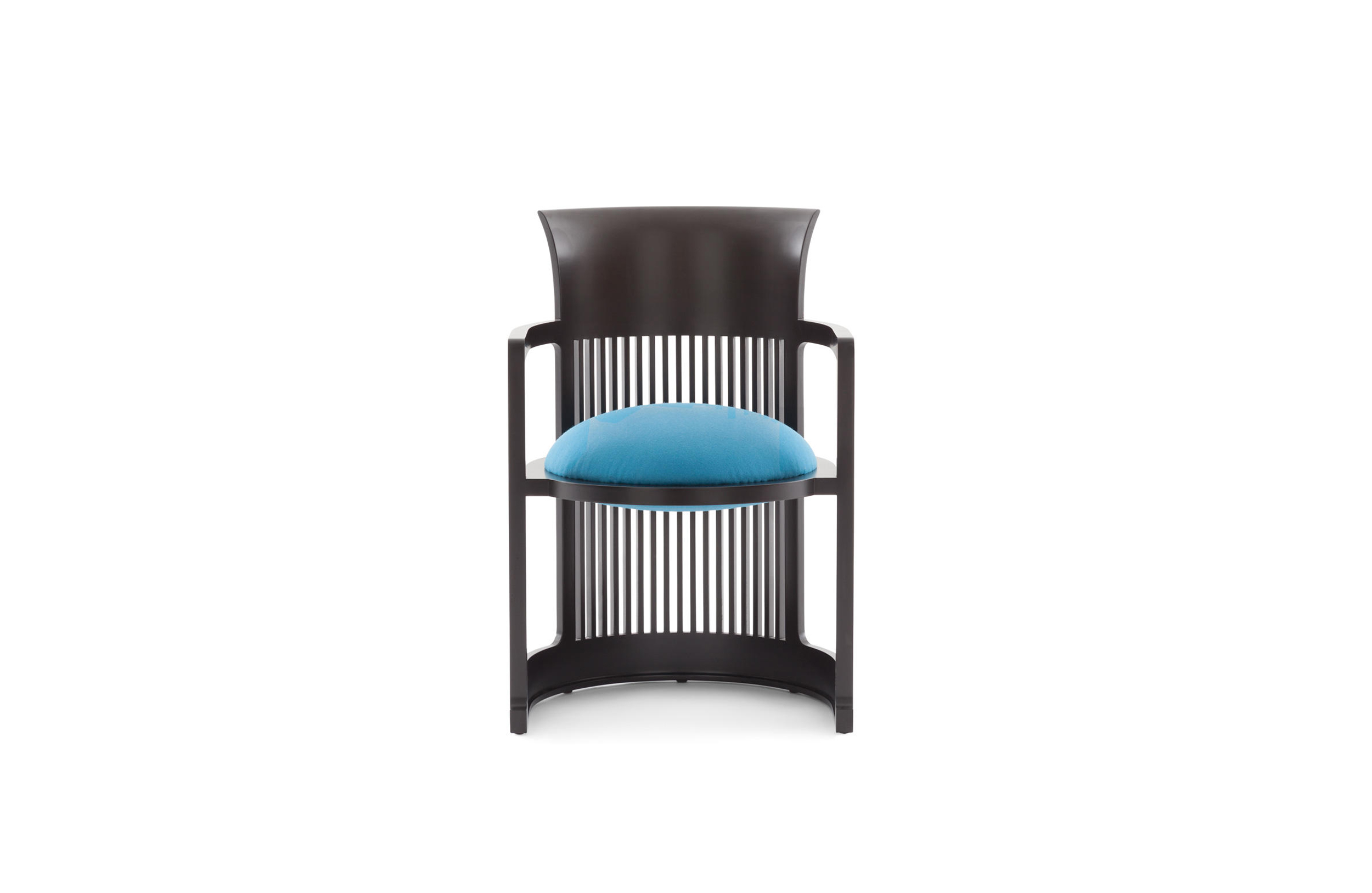 曲背餐椅,采用天然樱桃木、樱桃木色或黑色的胡桃木制造。塑料座面采用聚氨酯海绵和喷胶棉填充。座面软包为皮革或布艺面料。