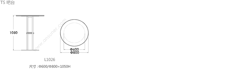TS 圆柱吧台 系列尺寸/示意图