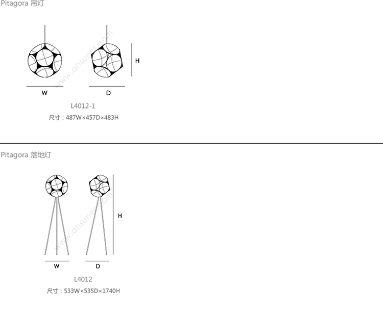 Pitagora 吊灯 系列尺寸/示意图