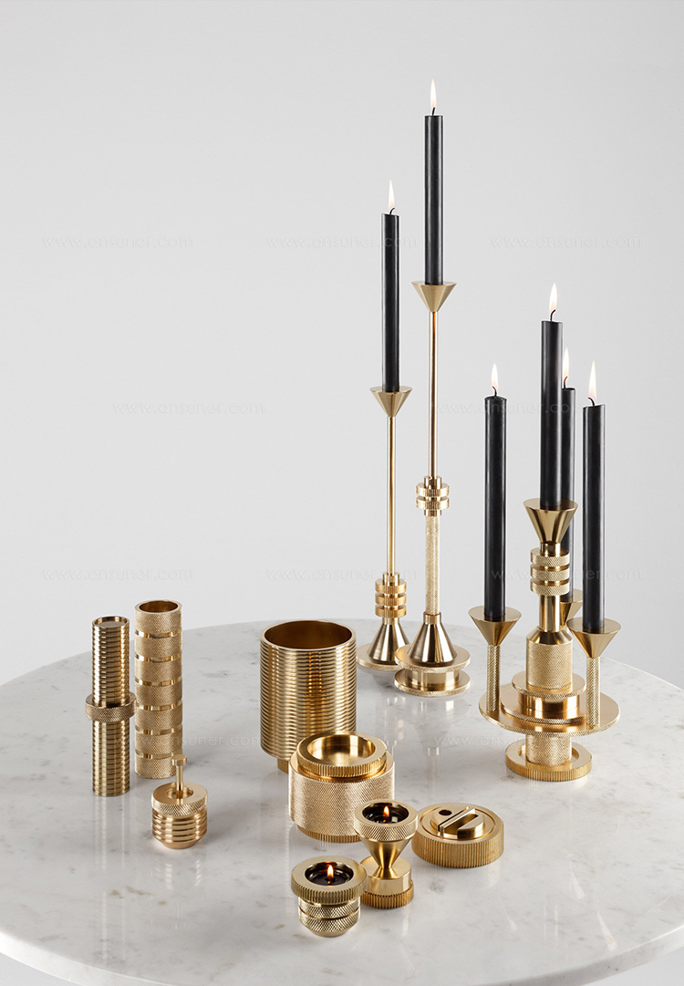 齿轮烛台可分为锥形或圆柱形。他们被设计用于各种配置和称赞在系列中的其他部分-整洁的办公桌,蜡烛烛台和烛台。