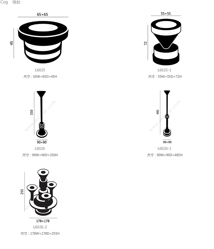 Cog 烛台 系列尺寸/示意图