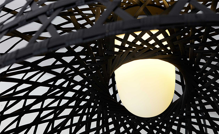 "Once upon a time an asian emperor received as a gift a nightingale. The charming bird sang so beautifully that the emperor always wanted it by his side. He placed the nightingale a majestic hand woven bamboo cage in the imperial chambers and listened, enchanted, to the magic sound" Material: Bamboo rattan cage, aluminum frame and glass diffuser Additional: Each cage is woven by hand And therefore has a unique character.