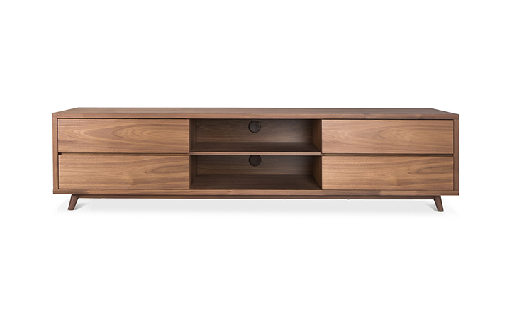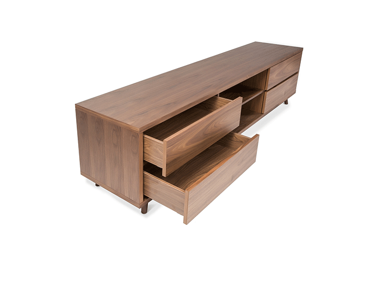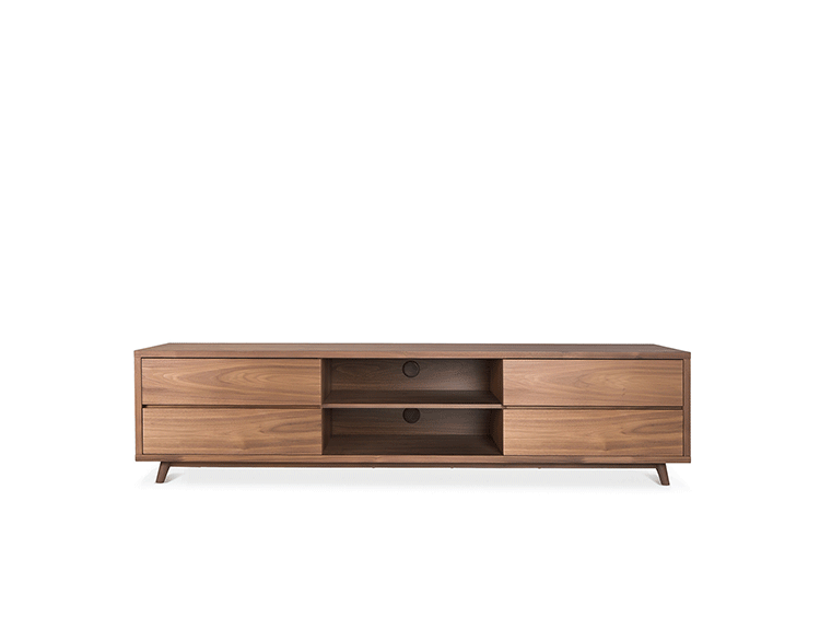glenoaks TV stand(glenoaks电视柜),中世纪风格,复古别致,设计精美,长方形的设计非常适合摆放电视,此外平台下面还有4个抽屉和2个开发的空间,给您更多存储空间。制作采用精选MDF板基材胡桃木或水曲柳木皮贴面、实木脚架、环保油漆喷涂、做工精湛。