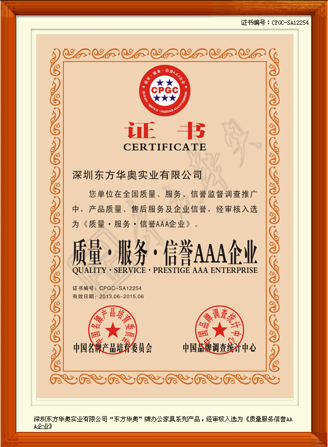 东方华奥《中国著名品牌》证书   东方华奥《中国工程建设推荐产品》证书   东方华奥《质量、服务、信誉AAA企业》证书